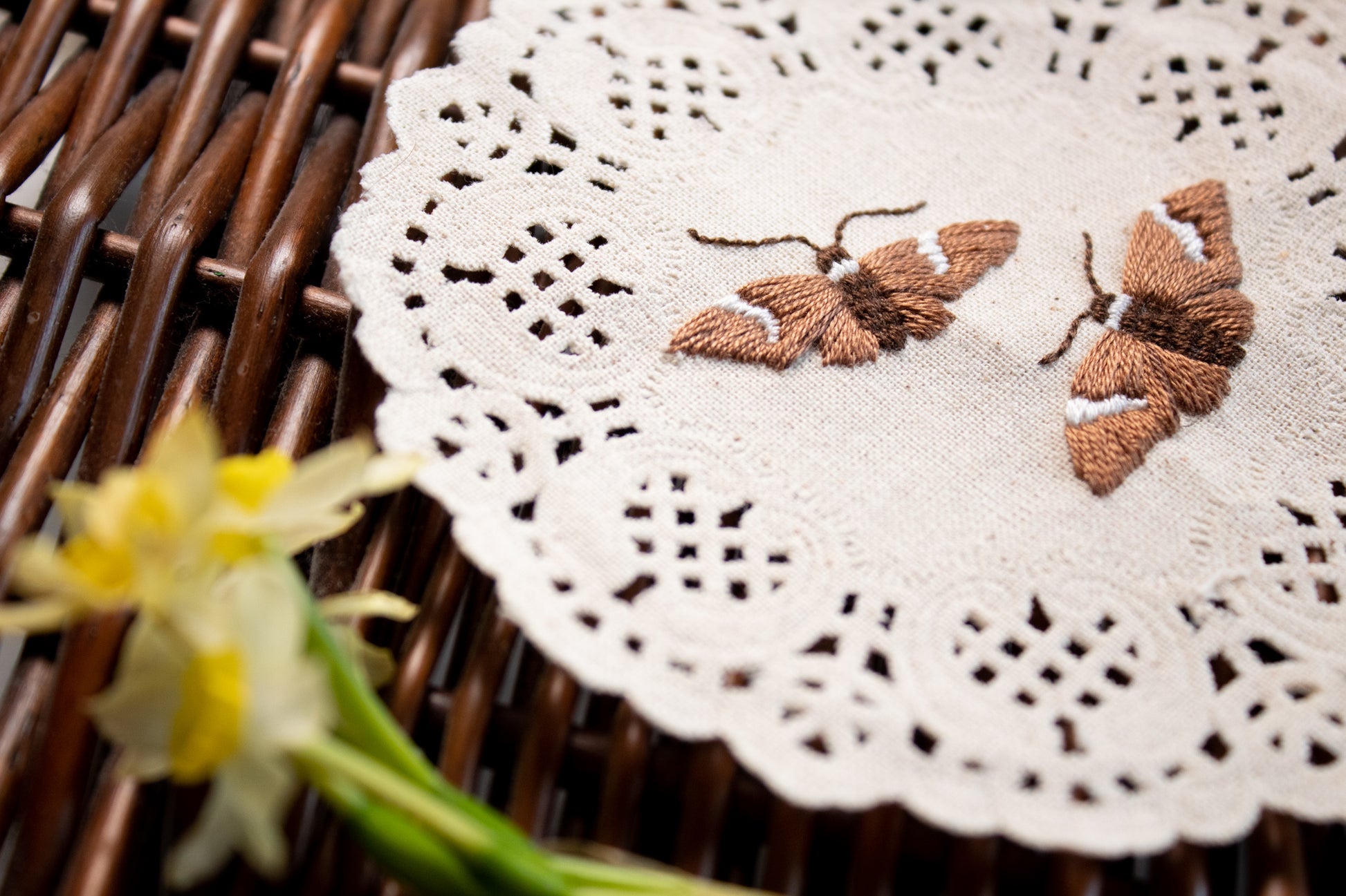 Pursue your love for entomology with this hand embroidered moth on a delicate doily. A great conversation piece and a lovely way to add a tiny bit of nature to your home.