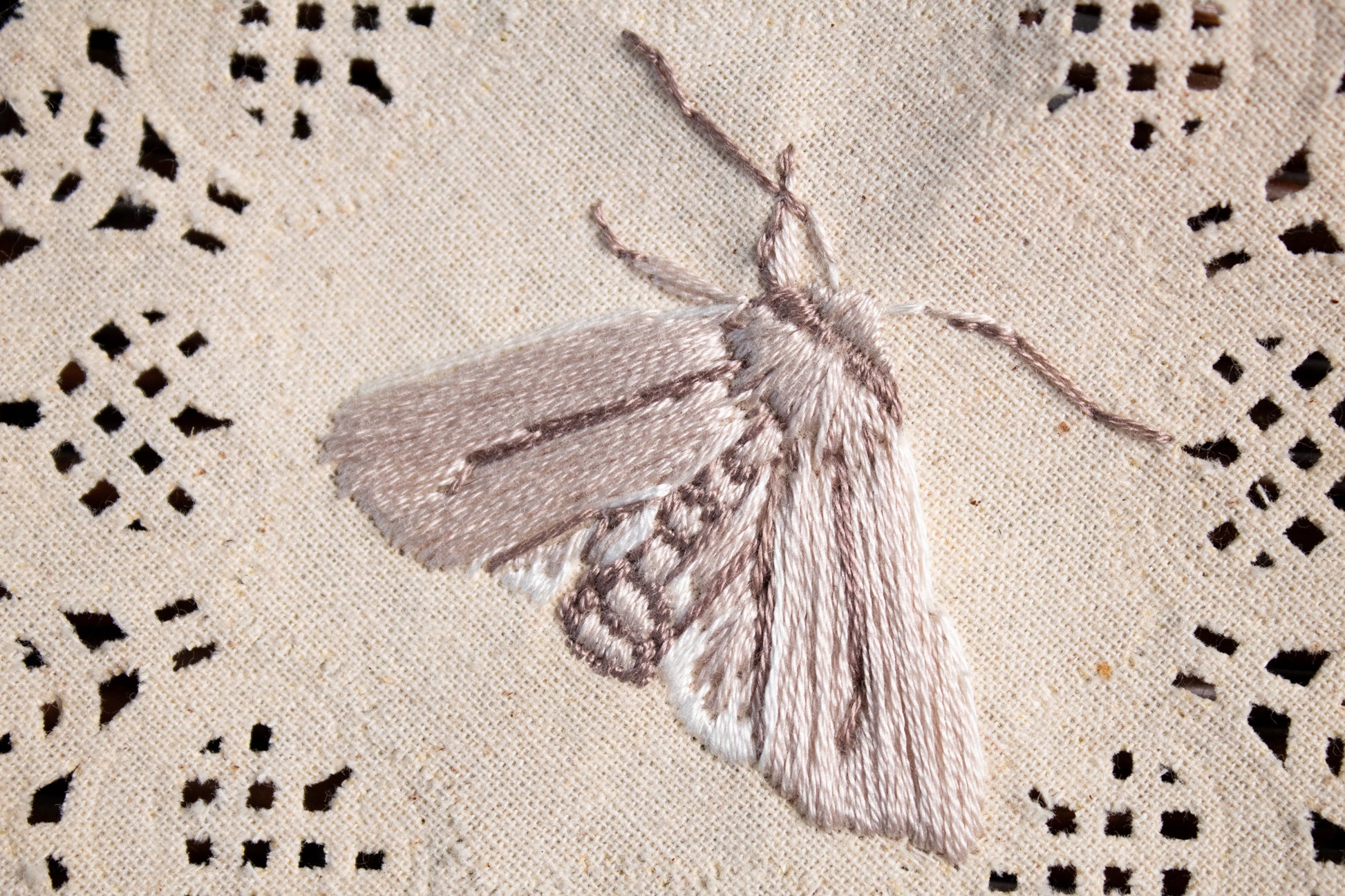 Pursue your love for entomology with this hand embroidered moth on a delicate doily. A great conversation piece and a lovely way to add a tiny bit of nature to your home.