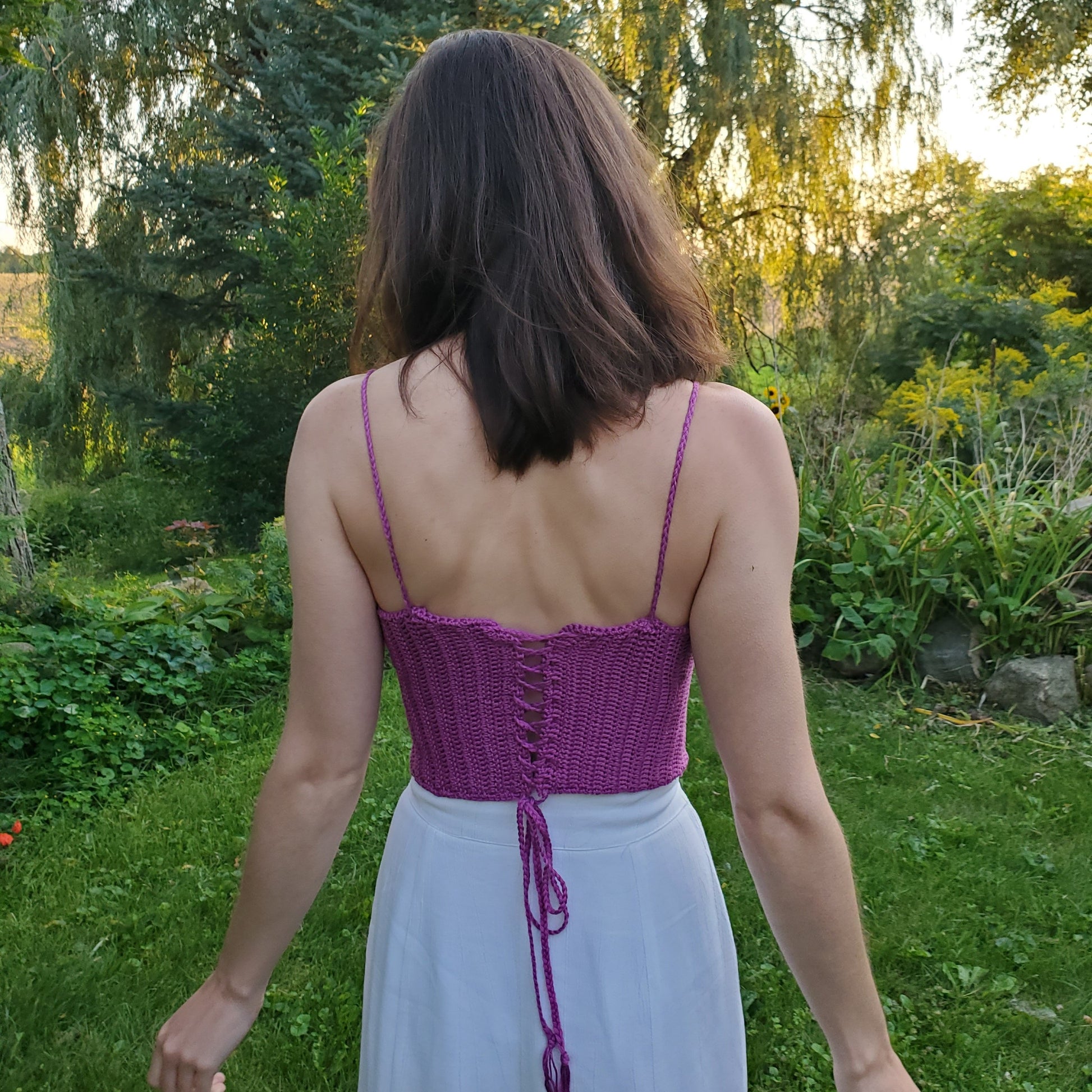 Each top is handmade and created with soft yarn that is 100% cotton. Only size Medium left in stock: Medium: Bust 36” – 38” Waist 27” – 30”